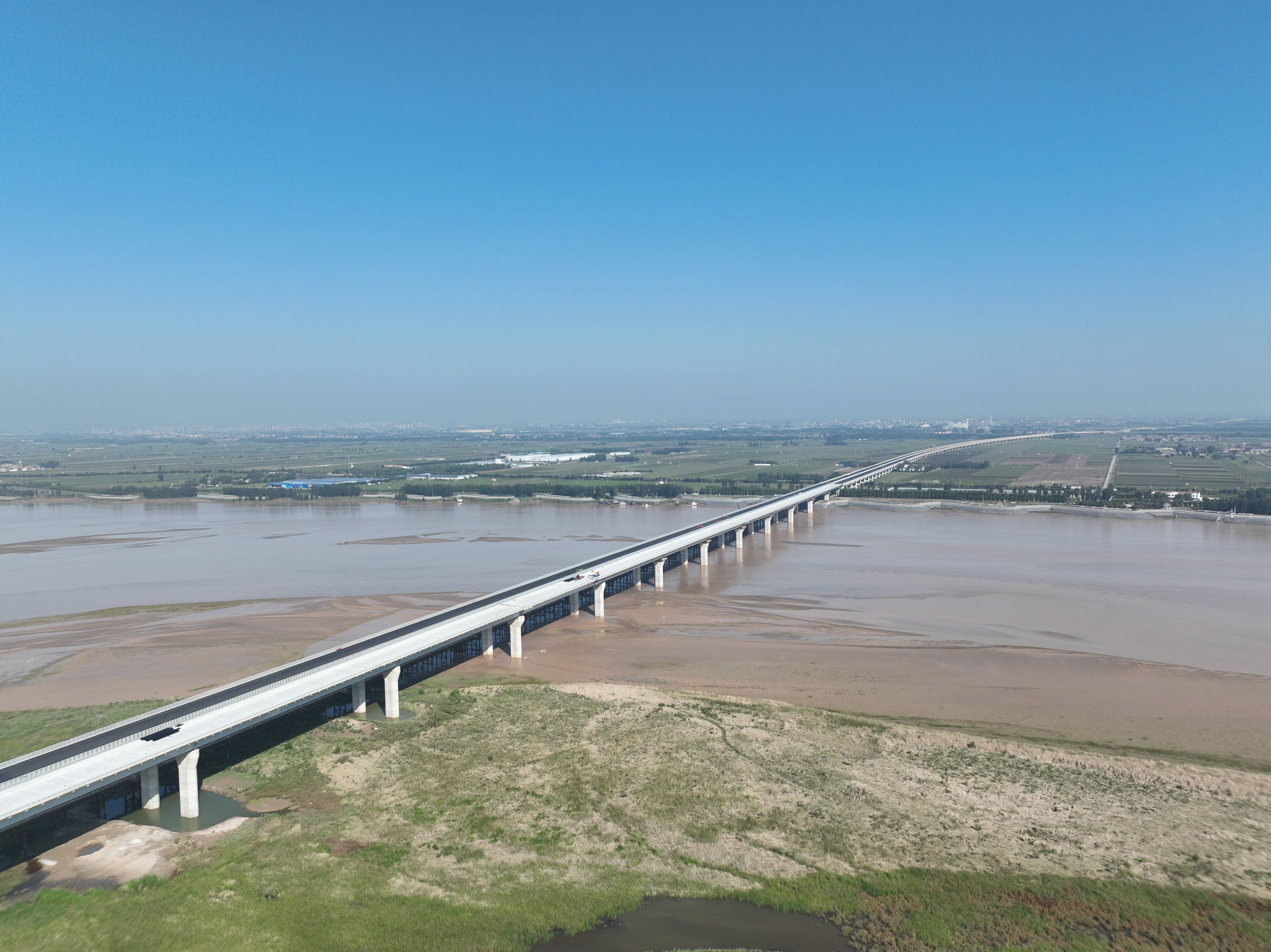 项目控制性工程黄河特大桥主桥主桥全长2585米,采用双向六车道设计,设计时速120公里,是国内同类高速公路中设计时速最高的大型桥梁之一。大桥主梁为槽型钢混组合梁结构,采用国际上最先进的步履式顶推施工工艺,其中单向最大顶推距离达1285米,顶推单跨达到100米,是国内顶推距离最长、单跨顶推距离最大的桥梁之一。